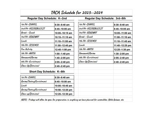TACA Pre- Enrollment form 2023-2024